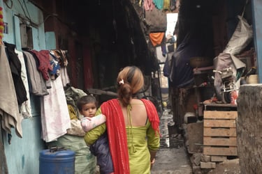 Delhi where nearly 45% of the population struggles with poor living conditions. Many of these communities lack basic amenities like clean water and proper drainage, making everyday survival a challenge. On November 14, 2024, I visited Kirti Nagar, a well-known furniture market in West Delhi. Beyond the shops and businesses lies a hidden reality—over 100,000 people live in overcrowded slums here. The narrow alleys are filled with garbage, and open drains spread disease, yet the people remain resilient.
